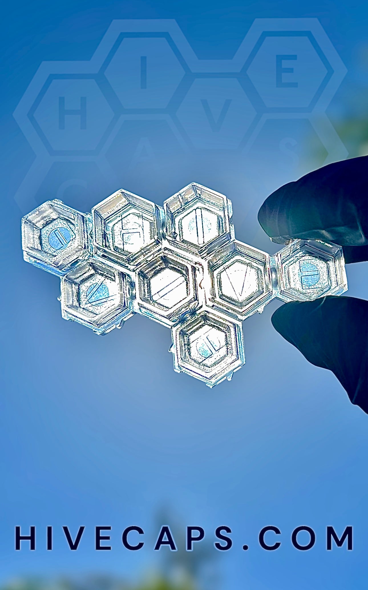 • Mega: Holds 5+ML. Equivalent to entire Hive Caps. Wide opening with a maximum width 0.875”.